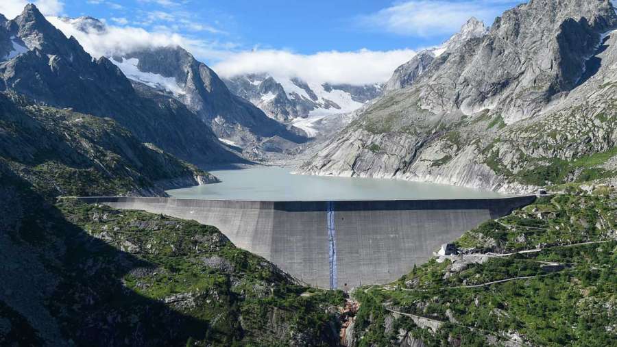 «Der Riss» heisst das Bild, das die Künstlerin und Alpinistin Maya Lalive am 4. August in einer aufwändigen Aktion mit Hilfe von Helikopter und Kletterern auf der Albigna-Staumauer im Bergell montiert hat. 139 Meter lang,10 Meter breit, der ganzen Staumauer entlang.