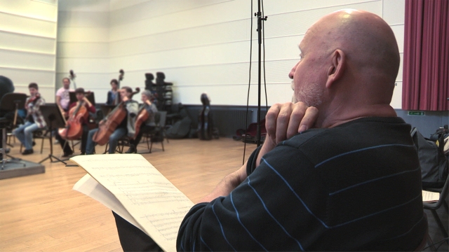 Das Zürcher Kammerorchester probt unter der Leitung von Matthias Foremny und der Solistin Alina Pogostkina das Werk des Komponisten Peteris Vasks «Vox Amoris». Vasks ist «Composer in Residence» beim Zürcher Kammerorchester in der Konzertsaison 2011/2012.